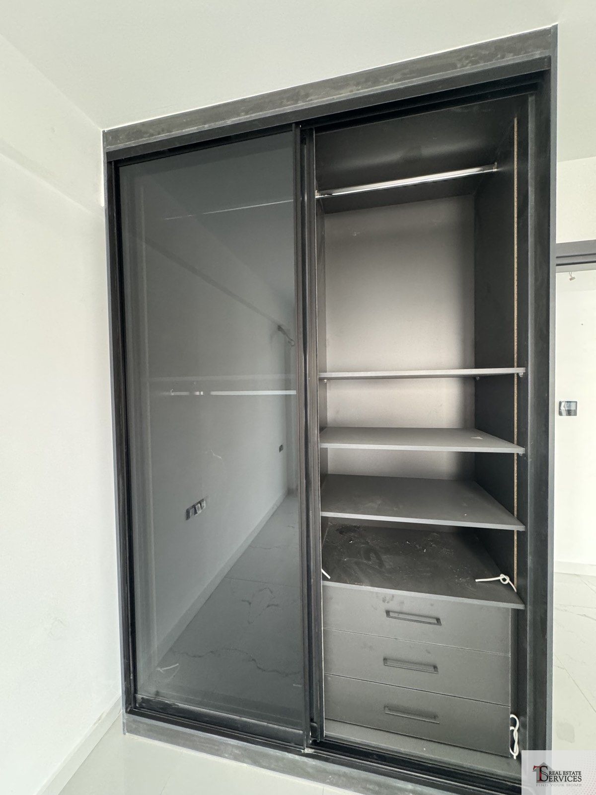 Αποτελείται από 2 υπνοδωμάτια με ντουλάπες, σαλόνι, κουζίνα, 1 μπάνιο και 1 WC. Επιπλέον διαθέτει βεράντα,( αποθήκη 17τμ.)και θέση στάθμευσης με φόρτιση ηλεκτρικού αυτοκινήτου..