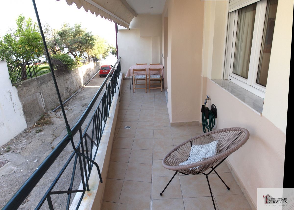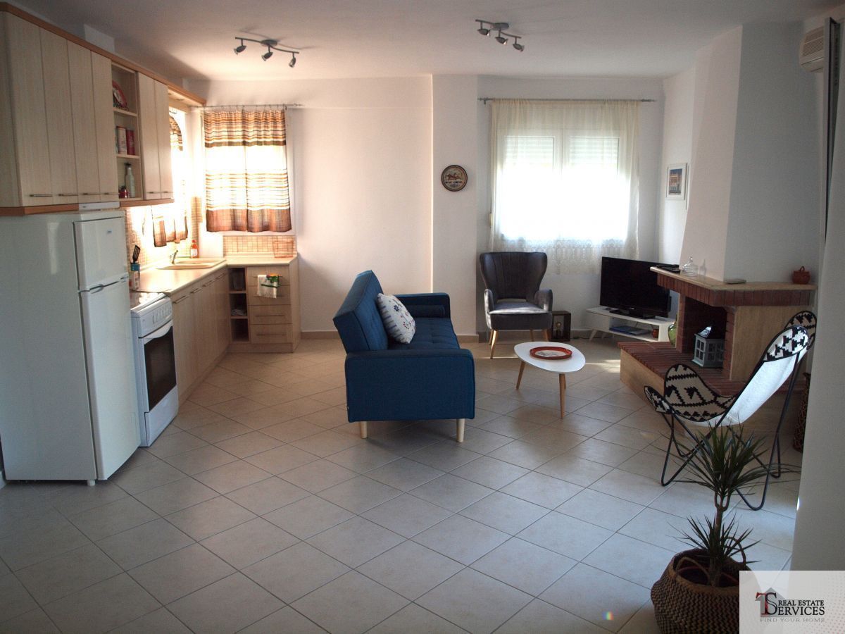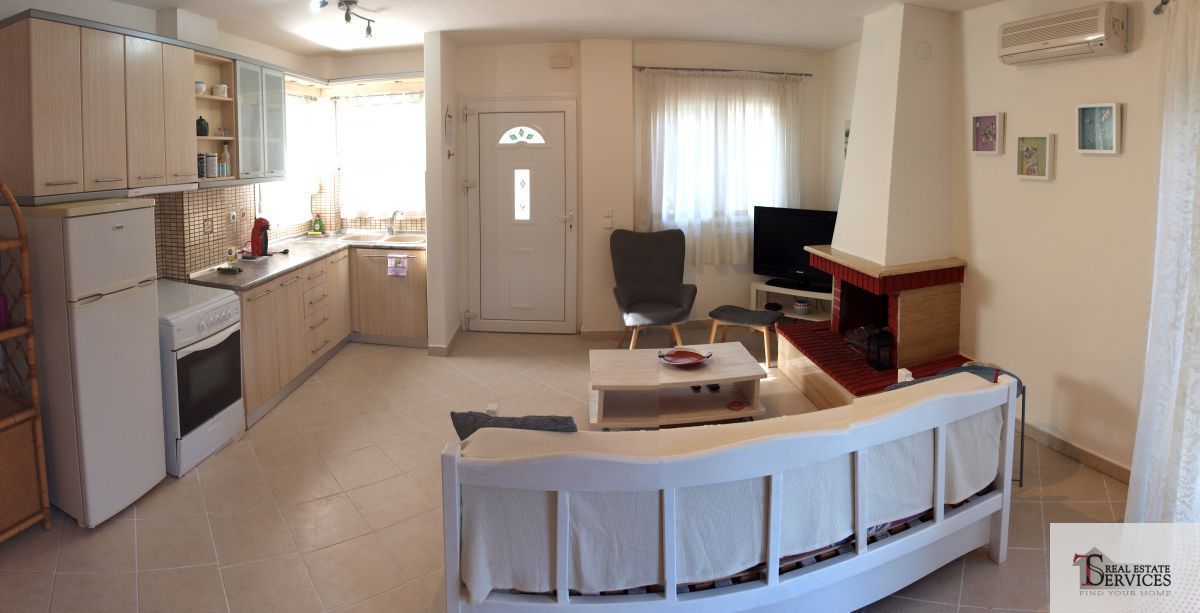 1ος όροφος 67τμ με 2 υπνοδωμάτια, ενιαίος χώρος κουζίνα-σαλόνι με τζάκι, μπάνιο, βεράντα.