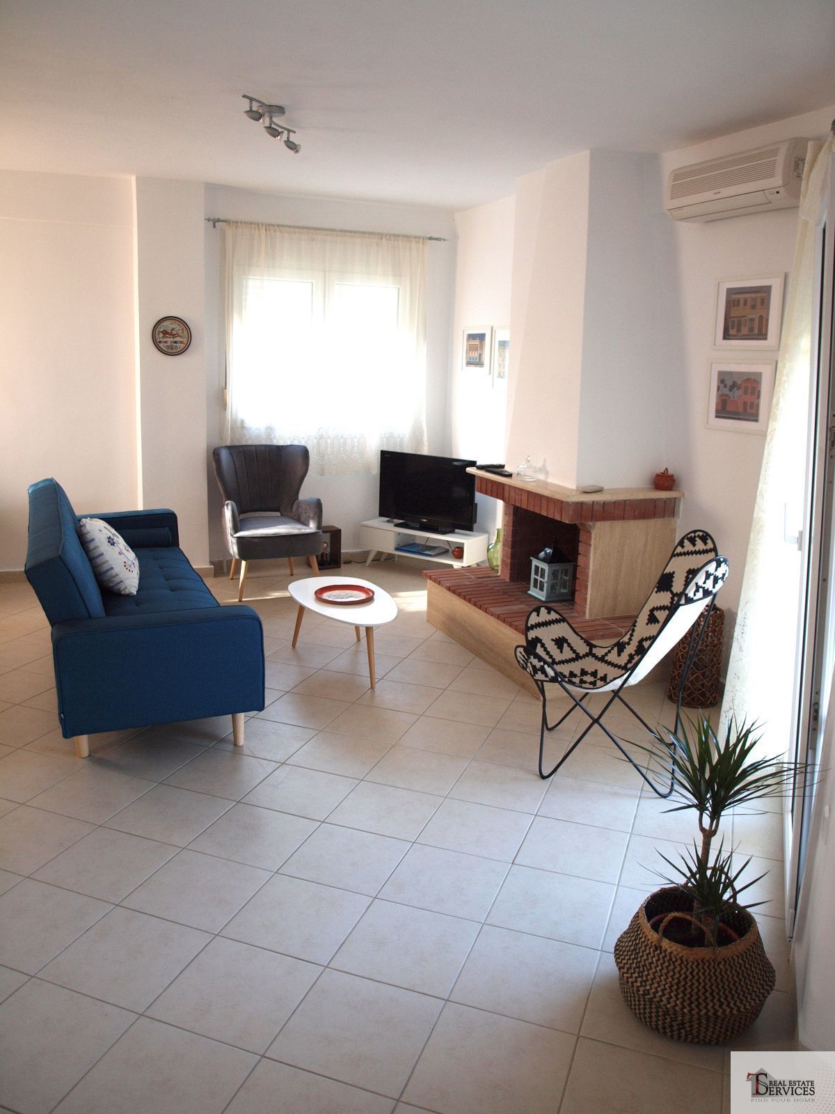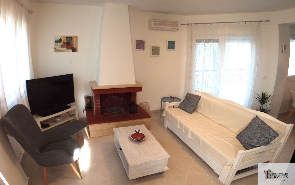 Υπερυψωμένο ισόγειο 71τμ με 2 υπνοδωμάτια, ενιαίος χώρος κουζίνα-σαλόνι με τζάκι, μπάνιο, βεράντα.