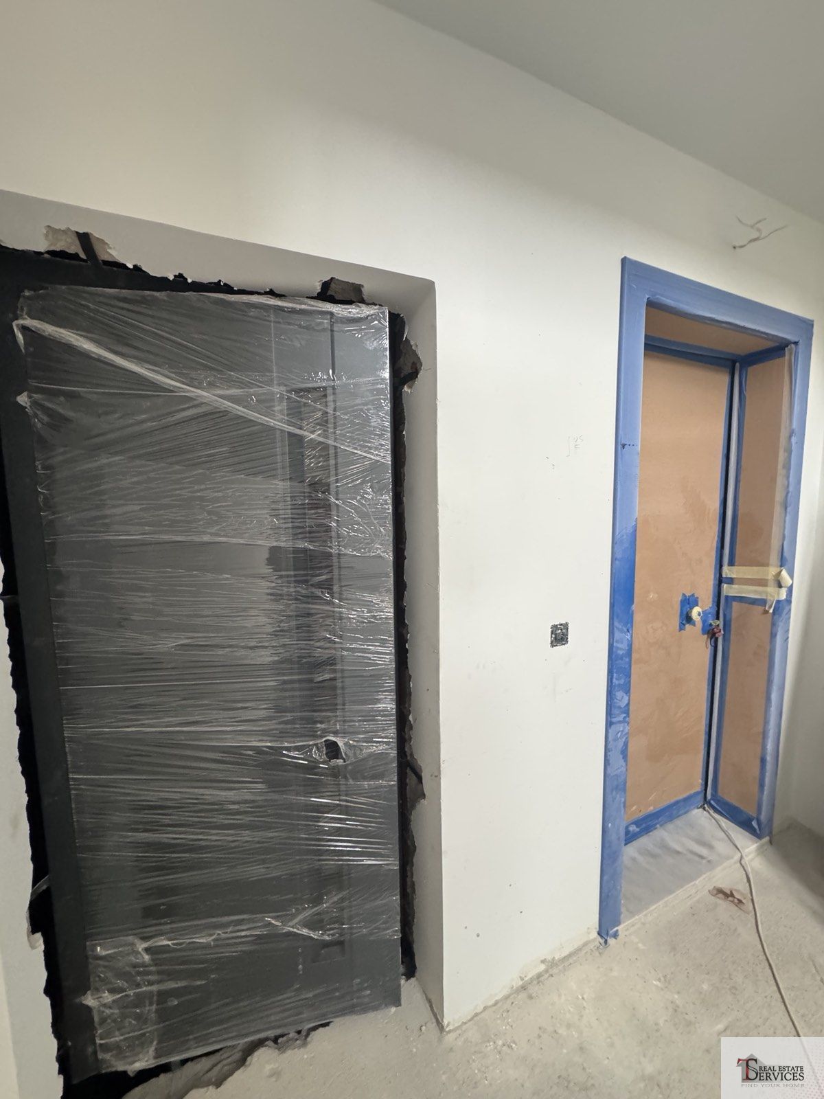 Στα εσωτερικά του στοιχεία αξίζει να σημειωθούν η πόρτα ασφαλείας, η εγκατάσταση για συναγερμό και ο ηλιακός θερμοσίφωνας.