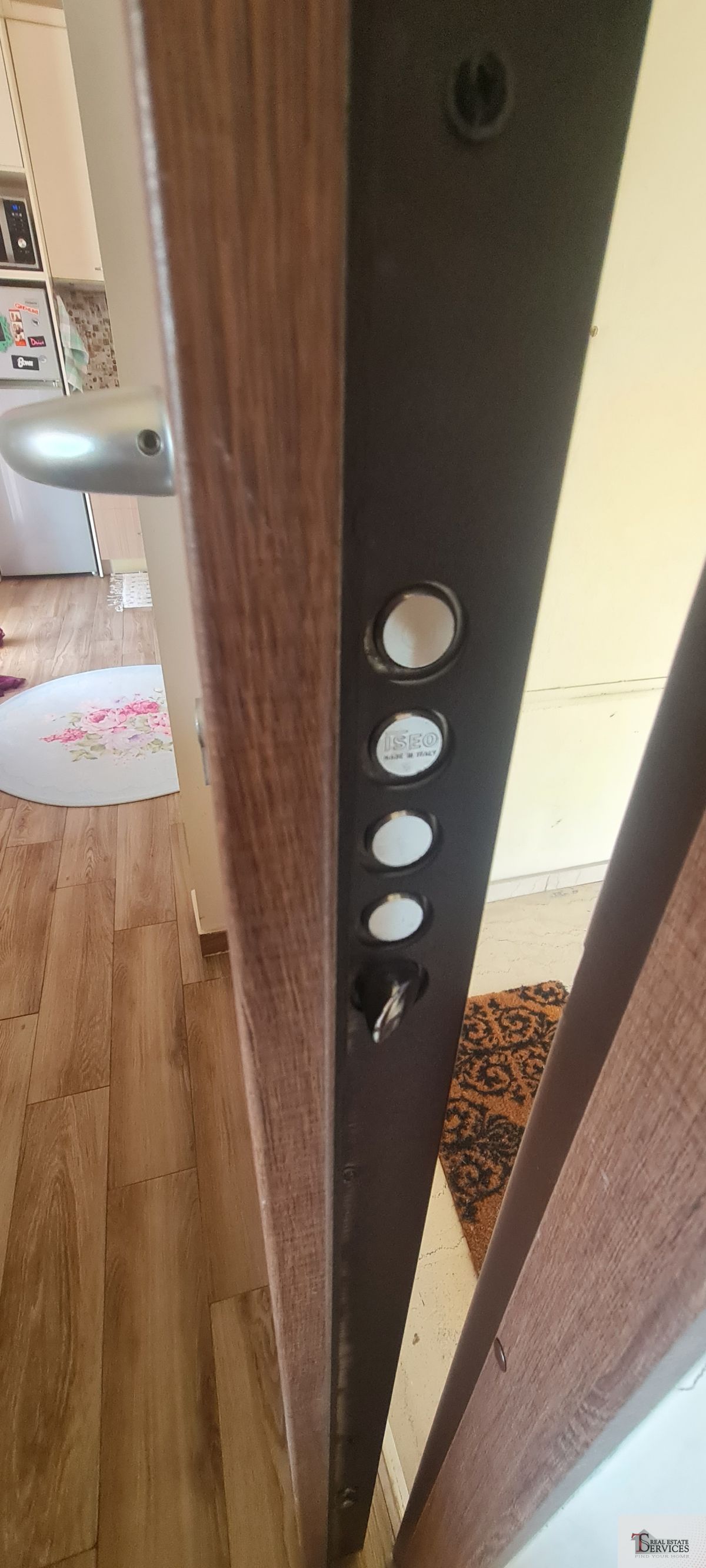 Διαθέτει κουφώματα αλουμινίου με διπλά τζάμια και είναι εξοπλισμένα με σίτες. Στα μπαλκόνια του υπάρχουν και τέντες. Τα δάπεδα είναι από ξύλο και πλακάκια.
