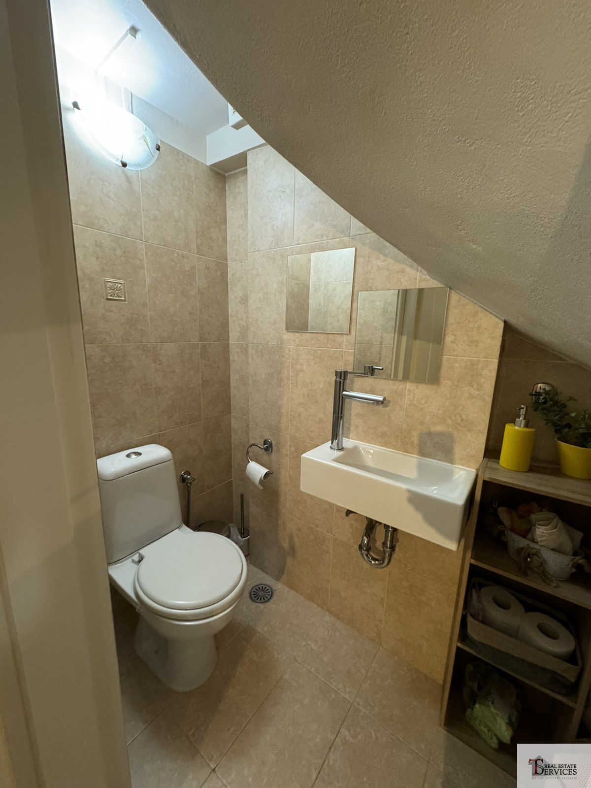 Είναι διαρρυθμισμένο σε 3 επίπεδα με εσωτερική σκάλα. Αποτελείται από 3 υπνοδωμάτια με ντουλάπες, 2 σαλόνια, κουζίνα εξοπλισμένη με ηλεκτρικές συσκευές και 2 μπάνια. Επιπλέον διαθέτει βεράντα, σοφίτα και 2 υπόγειες θέσεις στάθμευσης.