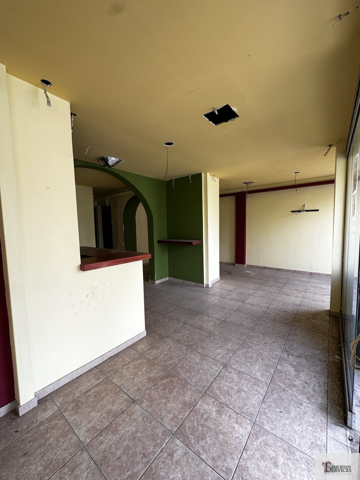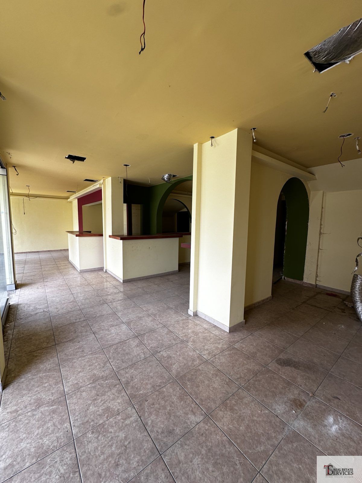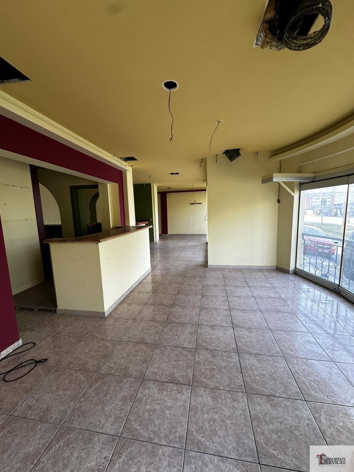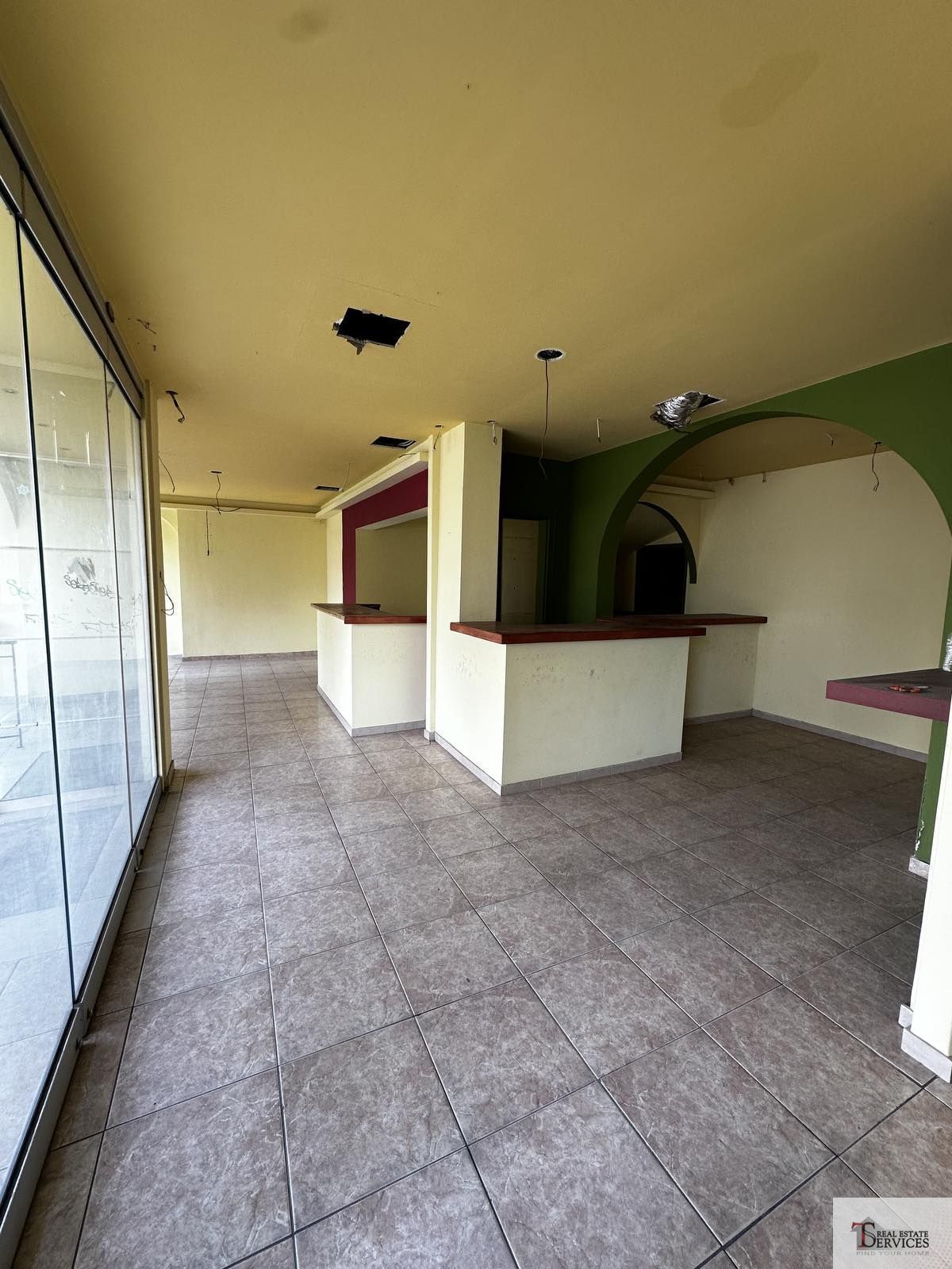 Αποτελείται από 1 χώρο, 2 WC, αποθήκη στο υπόγειο και αυλή στο πίσω μέρος του καταστήματος.