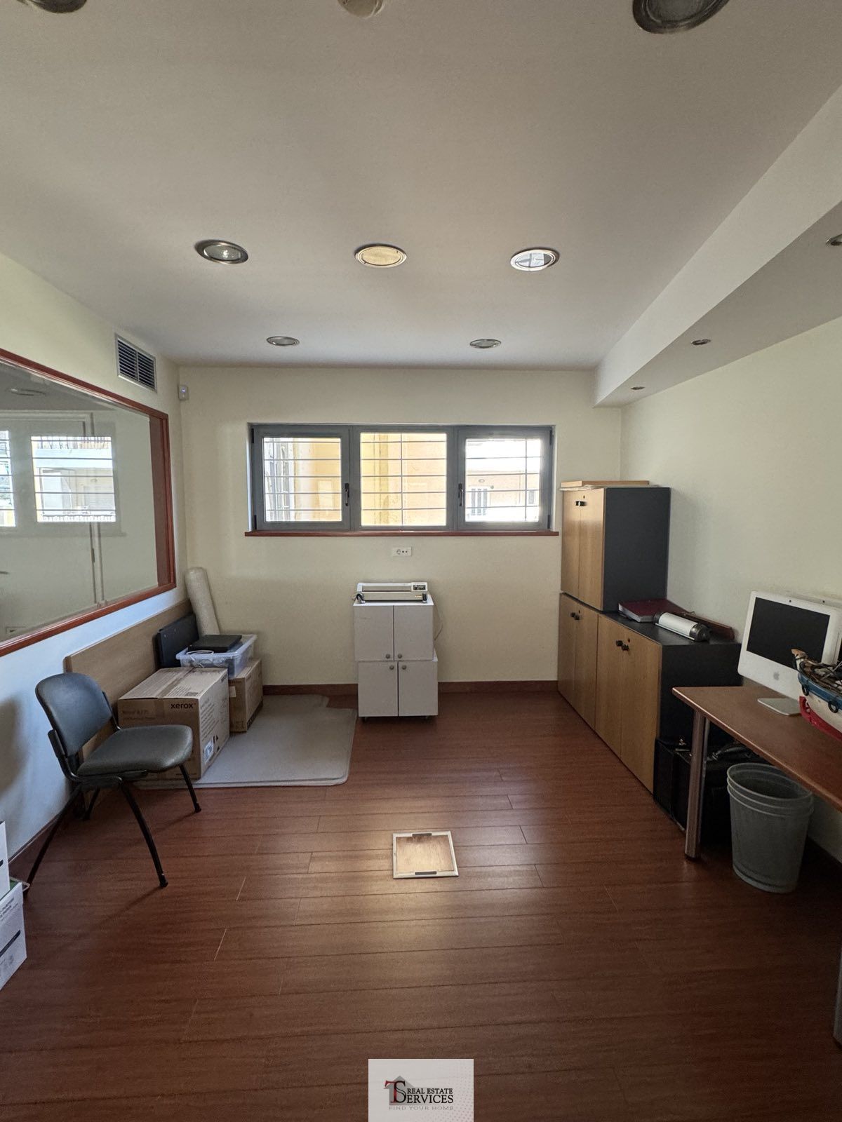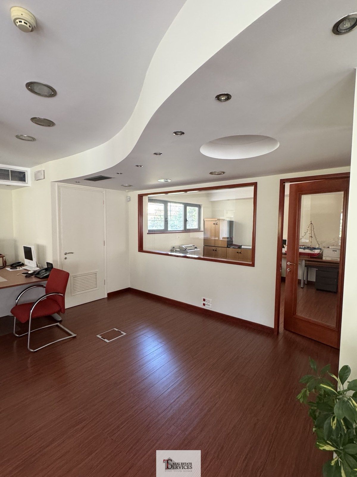Τα δάπεδα είναι από ξύλο και πλακάκια. Στα θετικά στοιχεία του αξίζει να επισημανθεί η πλήρης επίπλωση (16 γραφεία).
