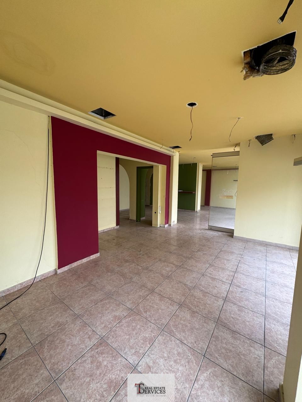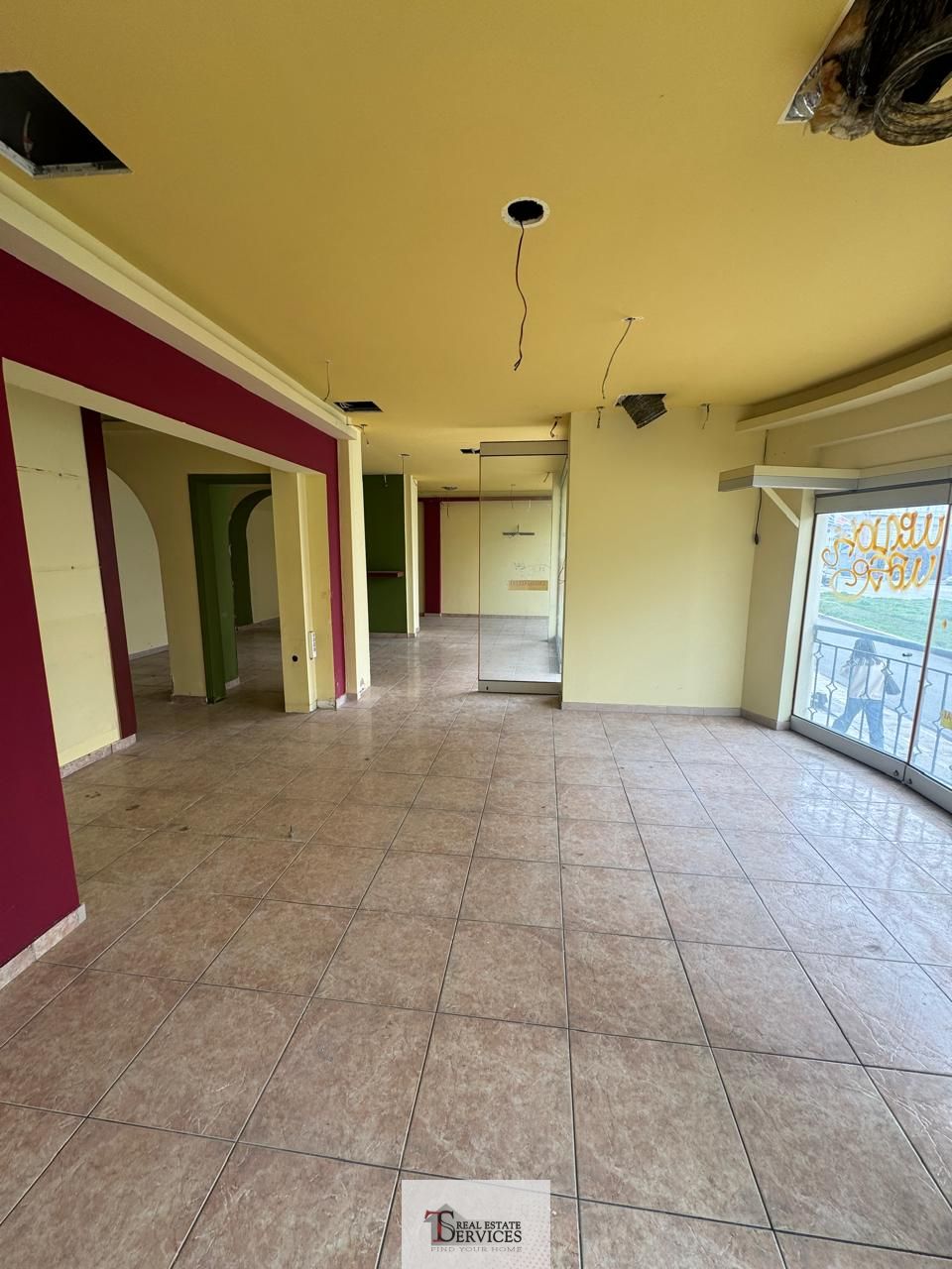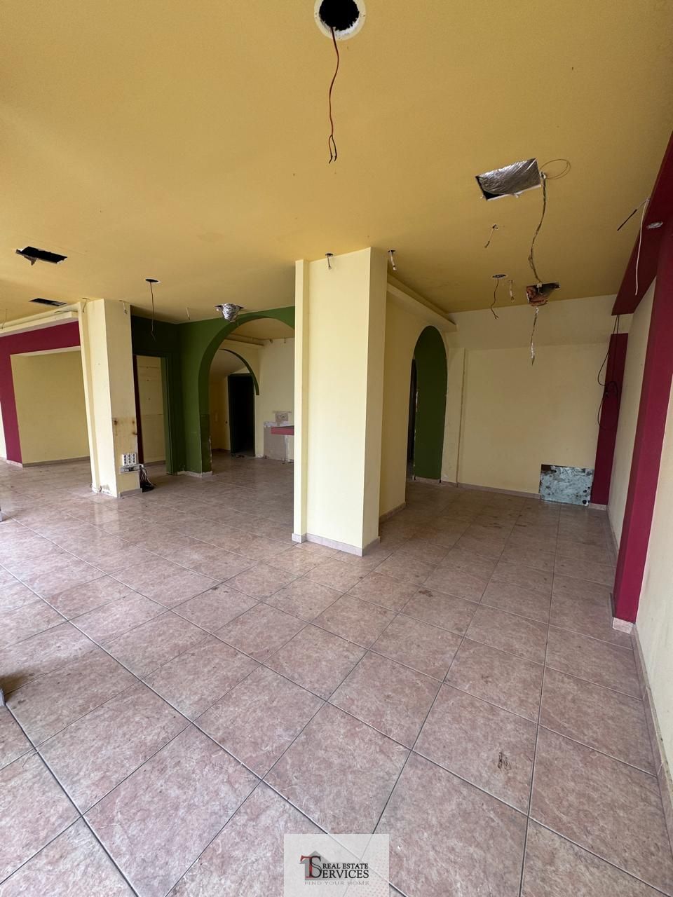 Αποτελείται από 1 χώρο, 2 WC, αποθήκη στο υπόγειο και αυλή στο πίσω μέρος του καταστήματος.